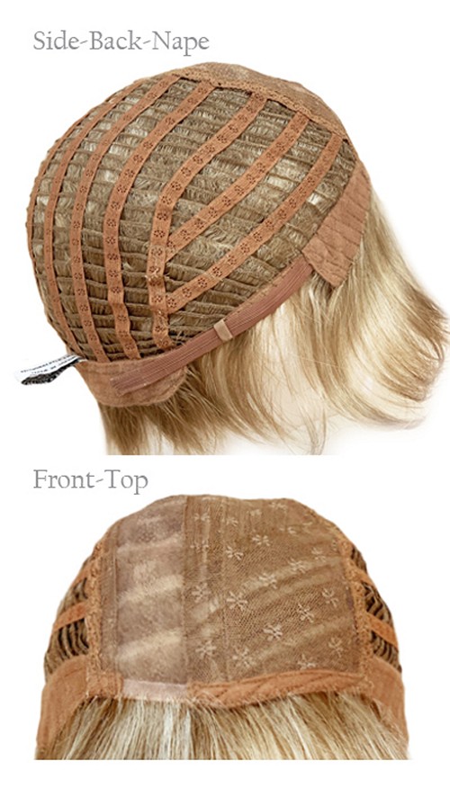 The nape area incorporates a band of soft velvet along with our new LAY FLAT ADJUSTERS. These adjusters enable the wearer to alter the size and feel of the wig to one which is the most comfortable to them.